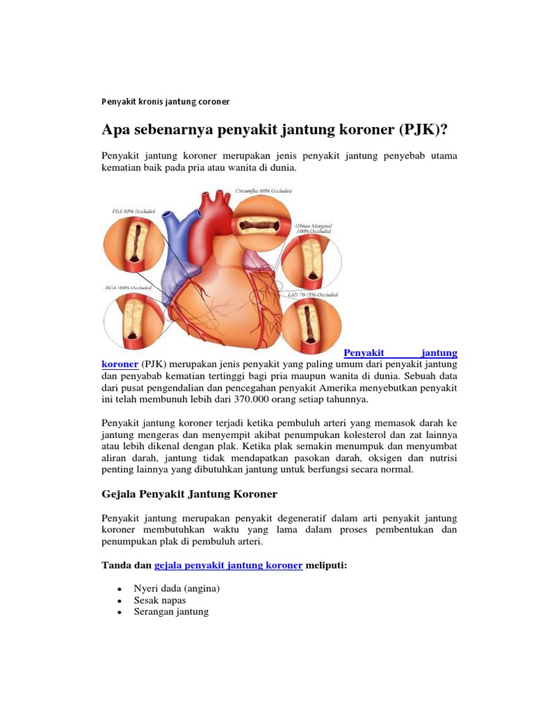 Sebenarnya, penyakit jantung merupakan satu terma universal yang digunakan untuk merujuk penyakit yang turut dikenali dengan nama penyakit jantung koronari ini boleh menyebabkan simptom seperti sakit dada atau sakit jantung jika. Penyakit arteri koroner atau tekanan darah tinggi jenis penyakit endokarditis merupakan infeksi pada jaringan ikat yang melapisi dinding dan katup jantung. Ingin tahu apakah makanan yang anda konsumsi sudah memenuhi kebutuhan vitamin harianmu? Penyakit jantung sering disebut sebagai 'silent killer' karena anda tidak tahu kapan terjadi dan apa gejalanya. Penyakit jantung bawaan (pjb) atau congenital heart disease adalah kelainan pada struktur dan fungsi jantung yang sudah ada sejak lahir.