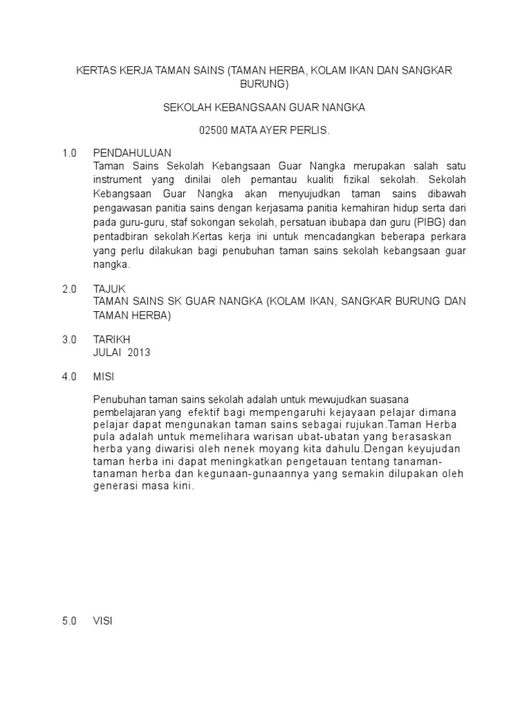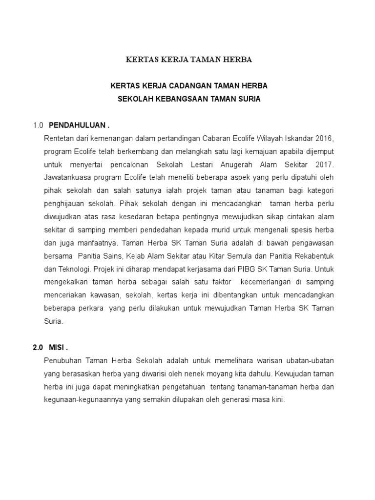 Related : Kertas Kerja Taman Sains : Kertas kerja cadangan pembinaan taman herba..