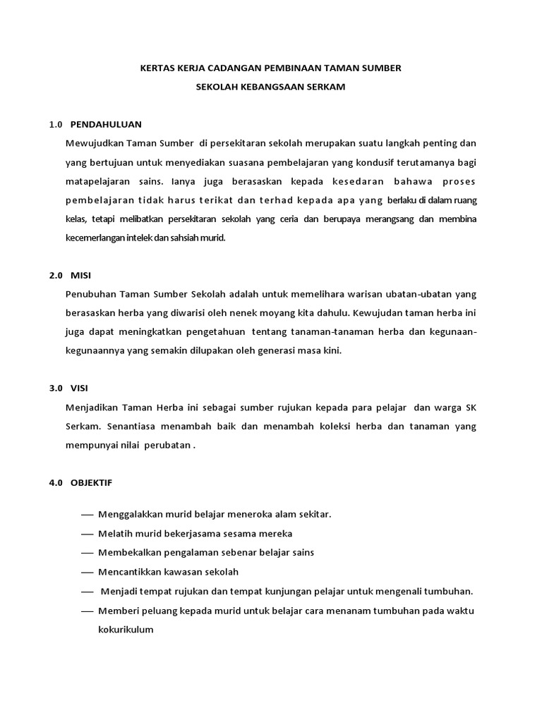 Kertas Kerja Taman Sains : Kertas kerja cadangan pembinaan taman herba.. Jika perlu calon boleh mendapatkan bimbingan guru sepanjang kerja projek dijalankan. Sains kepala batas, institut latihan perindustrian. Karambunai lagoon park anjuran : Assalamualaikum puan,saya mohon untuk mengambil contoh kertas kerja puan ya.terima kasih. Adakah anda sedang mencari kertas kerja membuka perniagaan restoran makanan ?jika ya, ini bermakna anda berada di tempat yang betul.