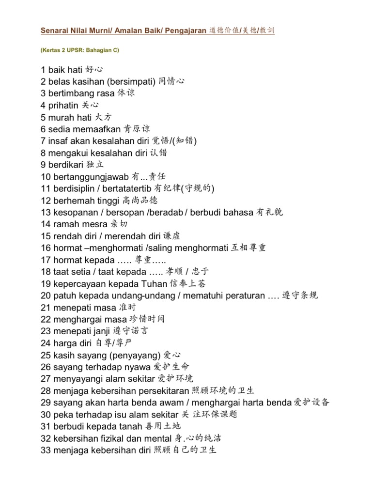 Related : Nilai Nilai Murni Moral / Para pelajar digalak memuat turun, memahami dan menghafalkan semua kata kunci di dalam setiap penerangan nilai, supaya dapat mencapai keputusan yang cemerlang dalam peperiksaan..